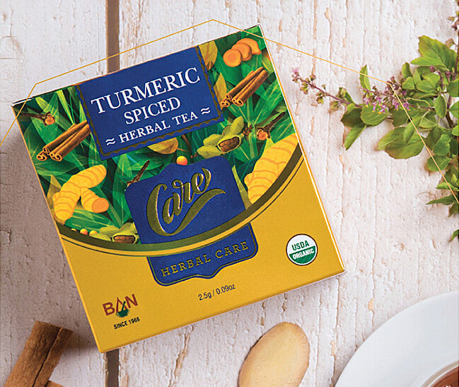 Care Turmeric Spiced Herbal Tea is a perfect melange of natural spices renowned for their powerful antioxidant, immune boosting, and cleansing properties. Turmeric is blended with flavourful spices like ginger, cinnamon, black pepper & asafoetida for a healing, rejuvenating & energizing experience that leaves you wanting for more! Completely caffeine free, this deliciously strong yet balanced blend has been crafted to make you feel at the peak of your health and shall become an instant favorite.